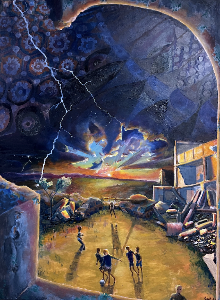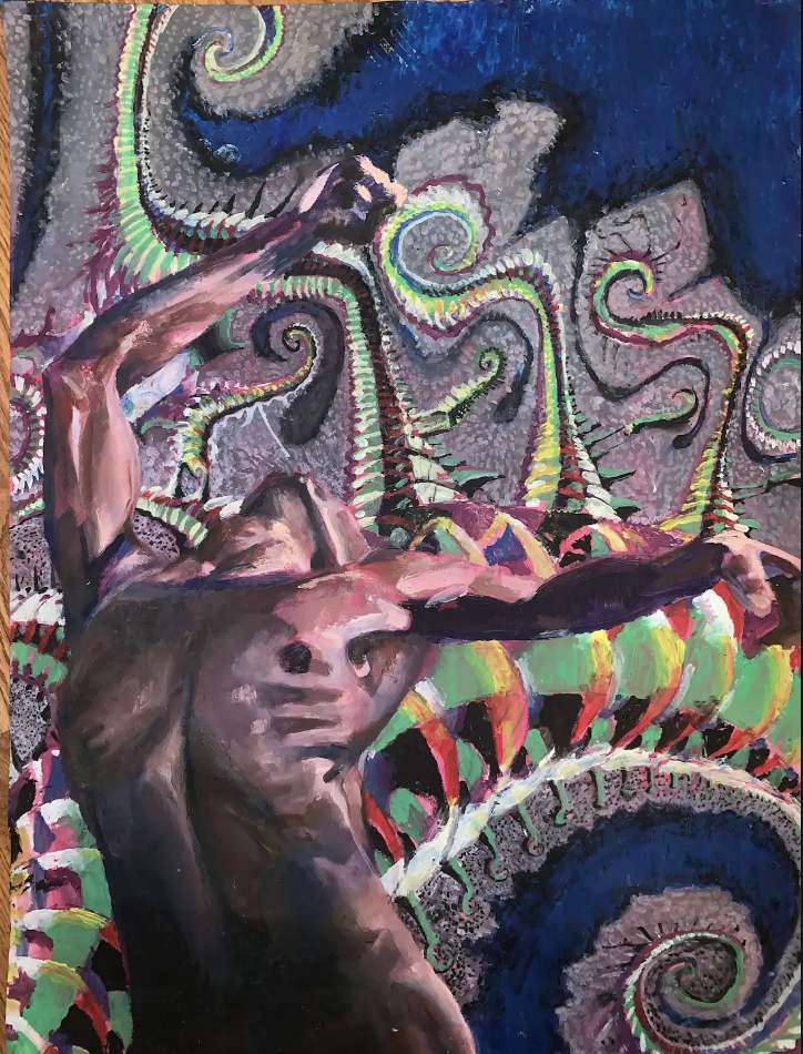 (40x30 Canvas) Acrylic Paint, Spray Paint, Mod Podge